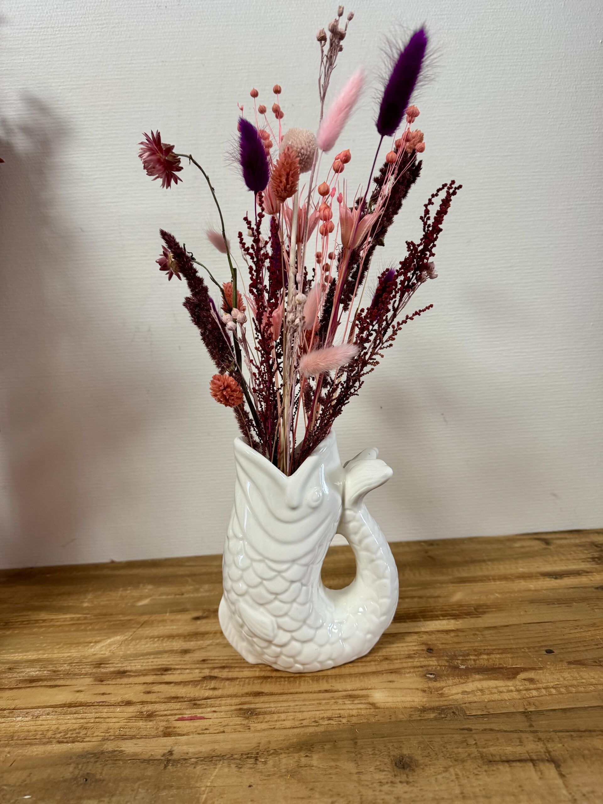 Composition florale de fleurs séchées et stabilisées.