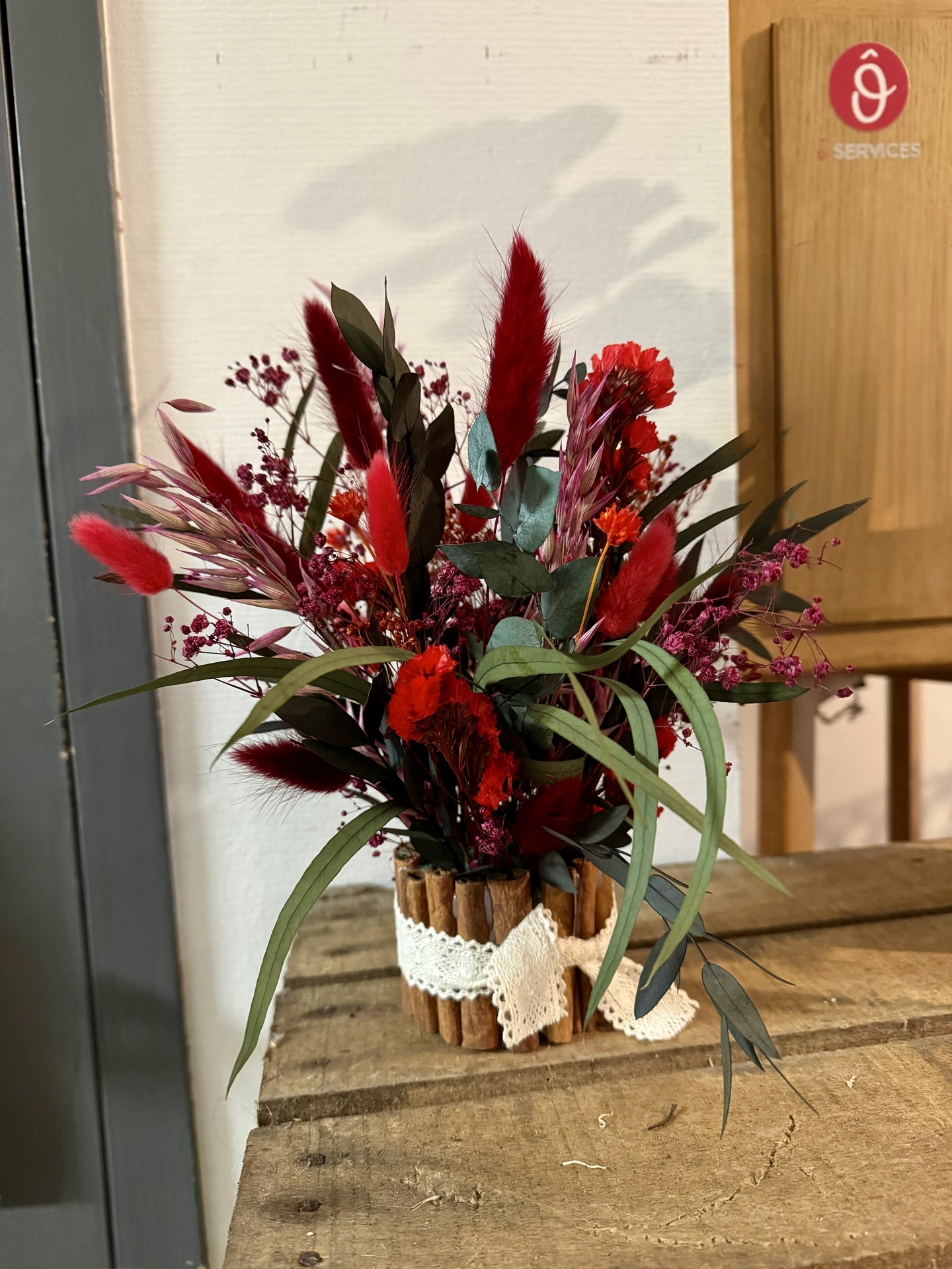Vase en cannelle + fleurs séchée et stabilisé.