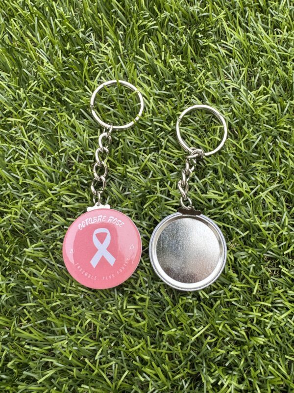 • Porte clé Ø3,8cm Pink power blanc €4,00