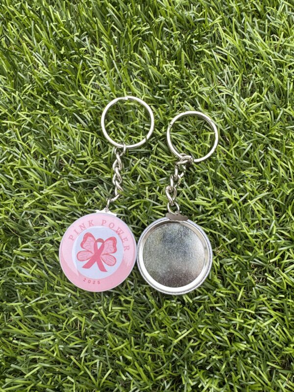 Porte clé (diamètre 3,8cm) Pink power rose.